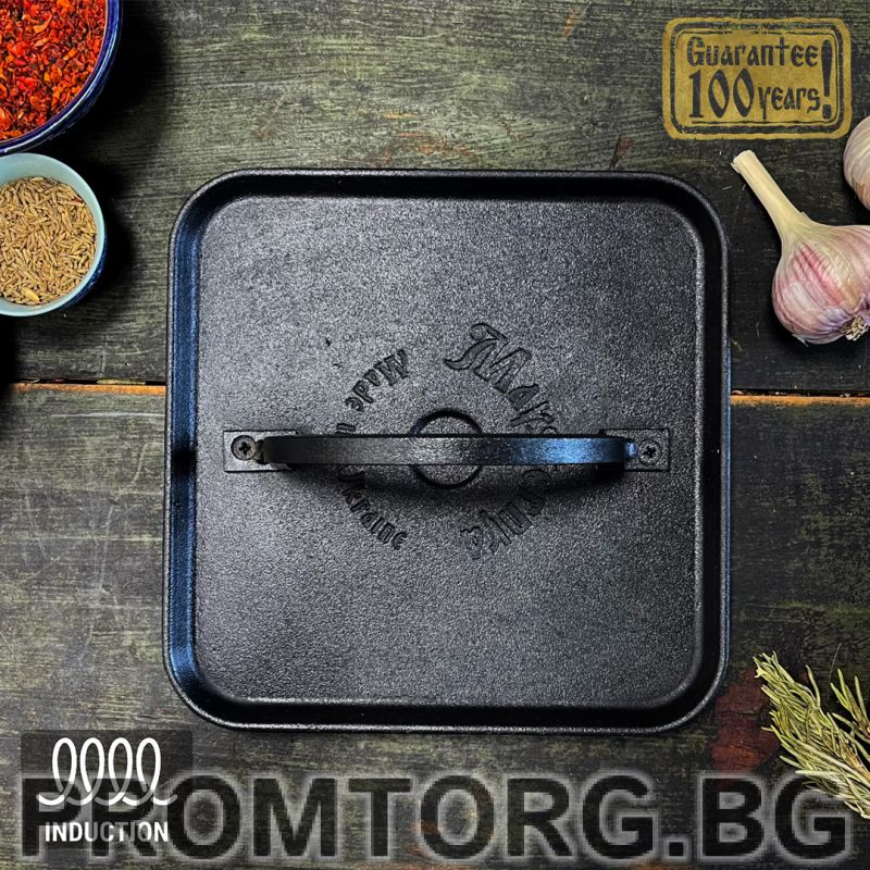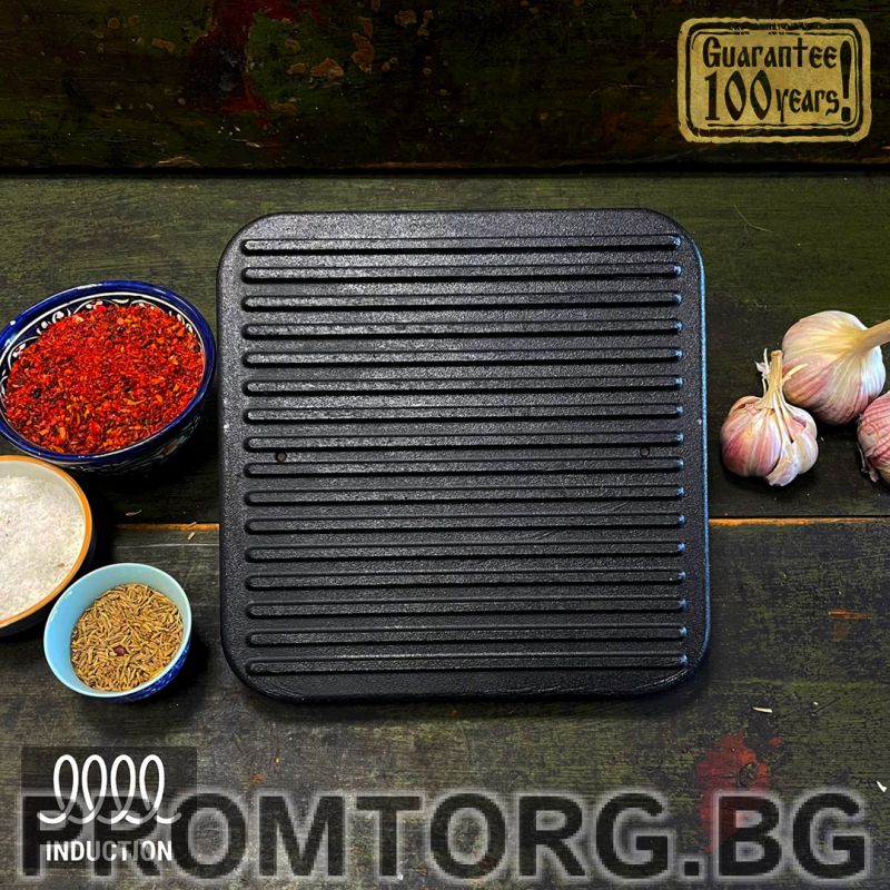 Преса-грил чугунен квадратен 21 см. Дебел и тежък. Точно такъв, какъвто трябва да бъде.