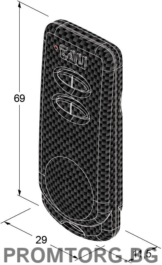 TAU 250K-SLIMRP е компактно и елегантно дистанционно управление с два бутона, работещо на честота 433,92 MHz. Благодарение на rolling code технологията, всеки предаван сигнал е уникален, което гарантира висока защита и невъзможност за копиране.